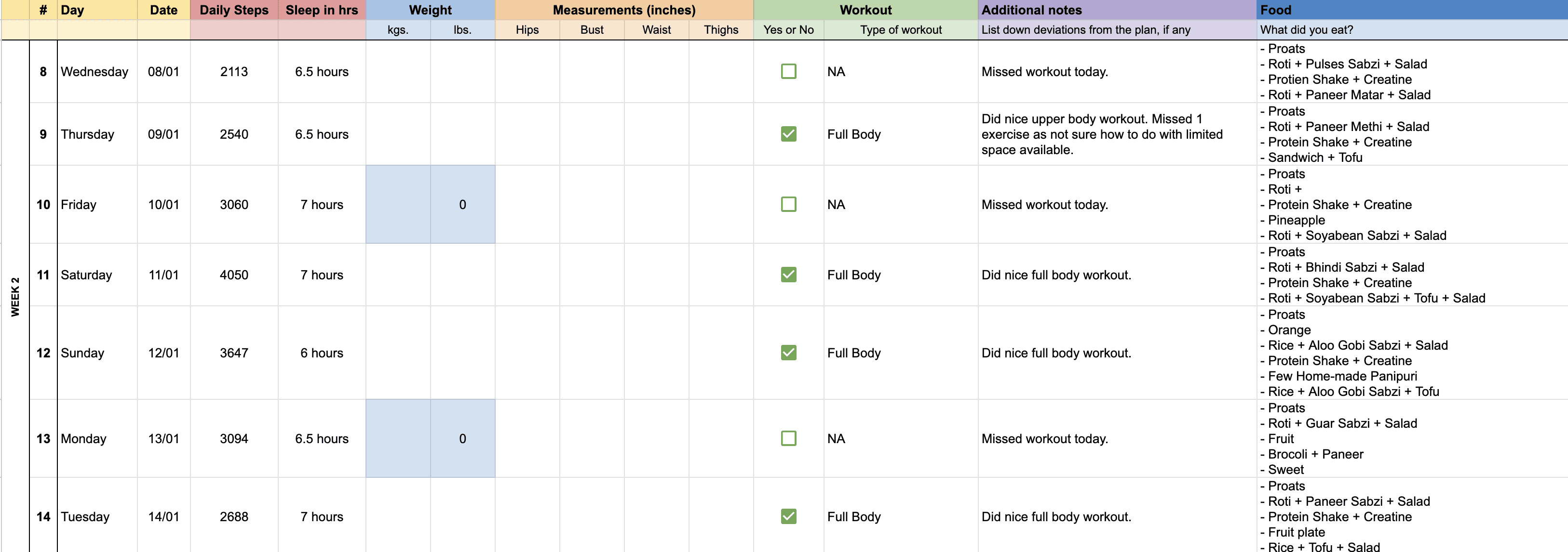 Here's what my typical journal and daily fitness tracking sheet looks like. :)